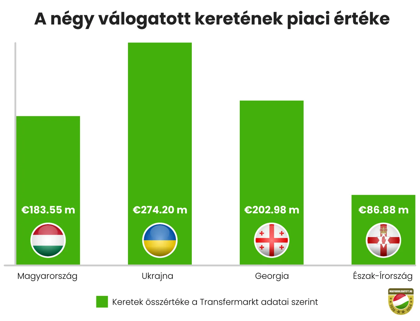A csoport összesszégében nem könnyű, de nem is megoldhatatlan feladat a magyar válogatott számára. Ukrajna áll csak a mieink felett a játékosanyag tekintetében (másfélszeres Transfermarkt-értékkel), míg a georgiai hasonló, az északír pedig éppen ennyivel van alattuk.